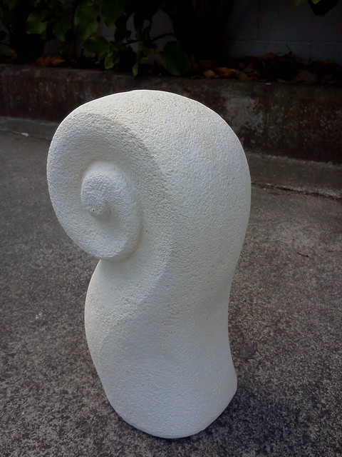 Made from white concrete and finished in cream. Height 21 cm, width 10 cm.