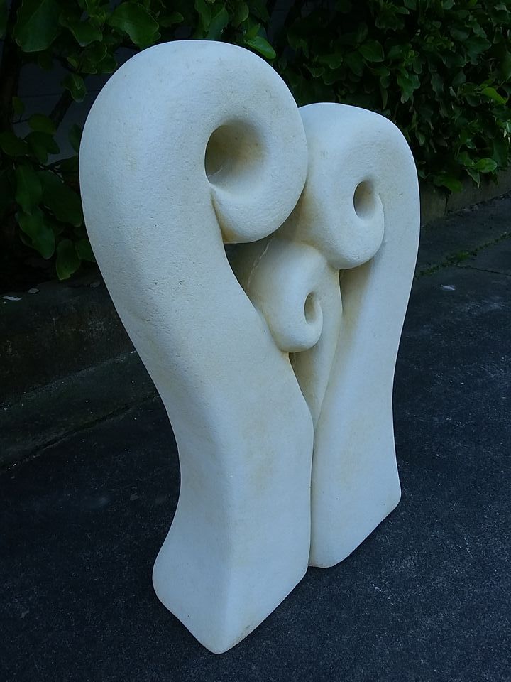 Made from white concrete and finished in cream. Height 61 cm, width 38 cm.